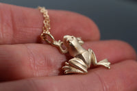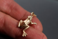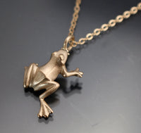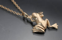Froggie!! i love frogs....this is the pendant to match the ring. he is solid bronze silver and carved on both sides with a very nice quality14 k gold fill 18 "double rope chain. available in satin finish with polished toes and eyes.. or all high polish.........ribbet also available in gold just ask for an estimate
