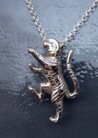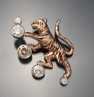 i originally made this in gold and added diamonds in bezels at the tip of each foot . it looked like the tiger was playing with balloons. i thought it looked good without the balloons too so here it is in silver . you can order it in gold too just ask for an estimate. and if you have gemstones you dont know what to do with you might add them to this tiger .